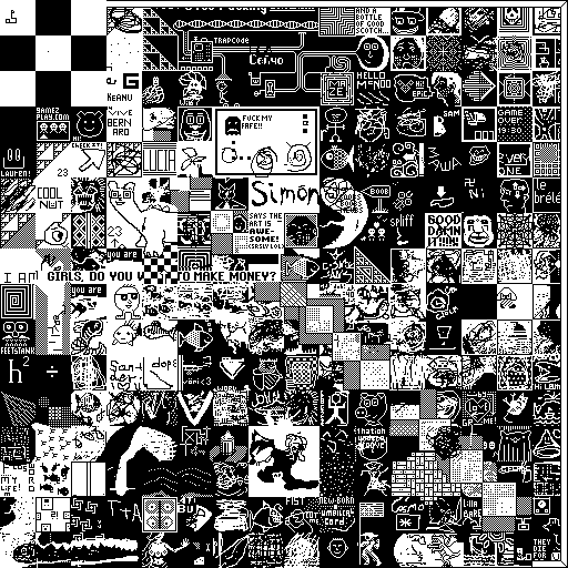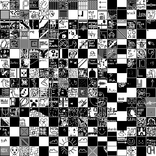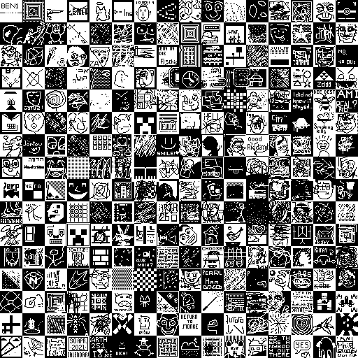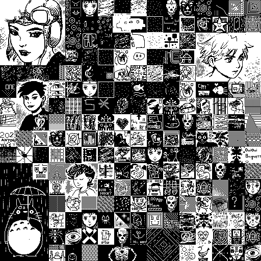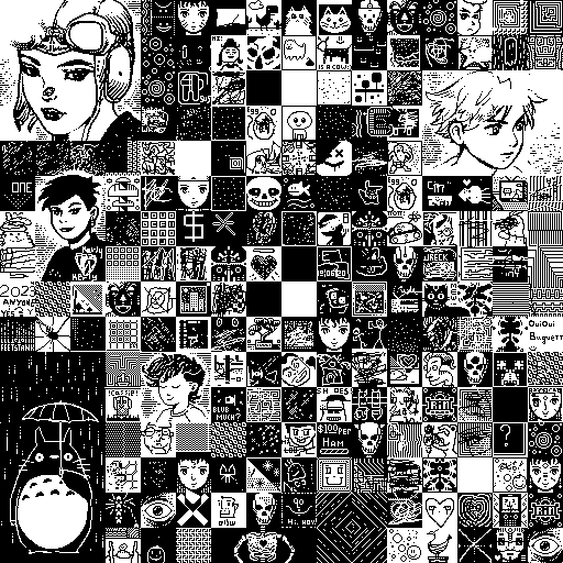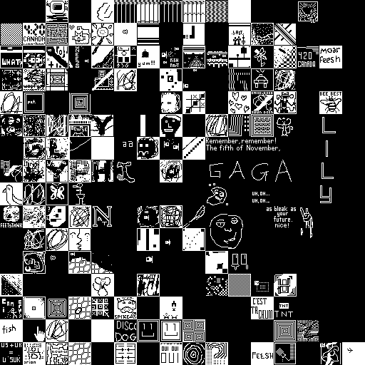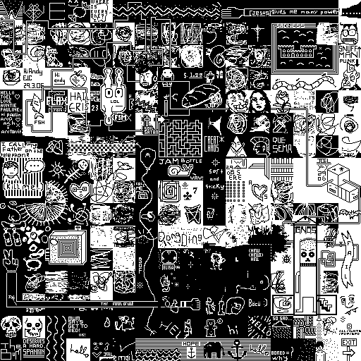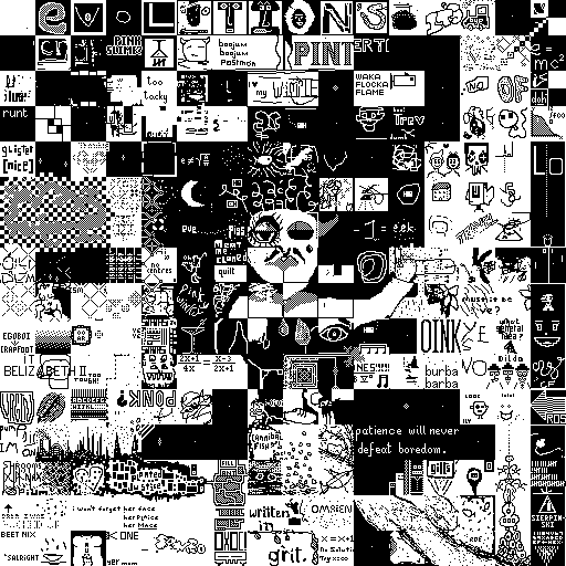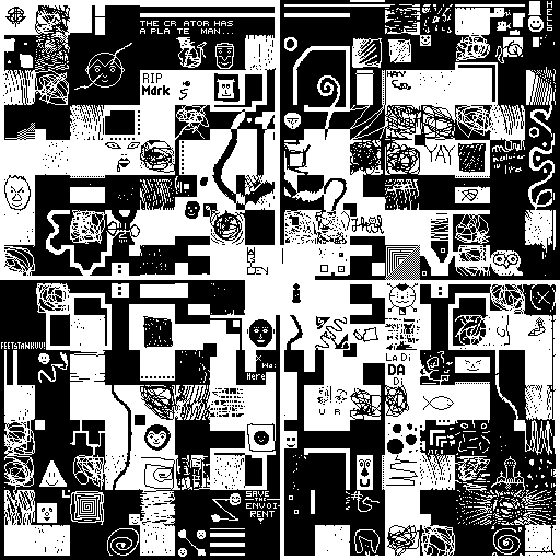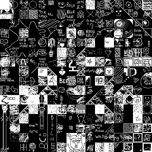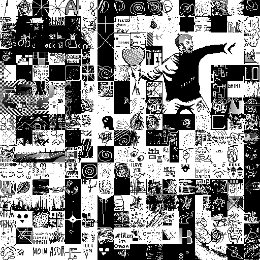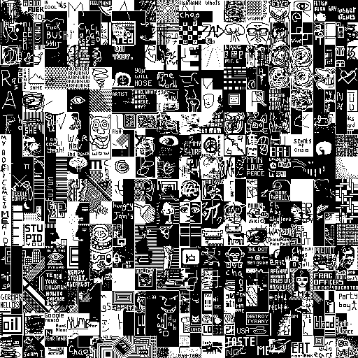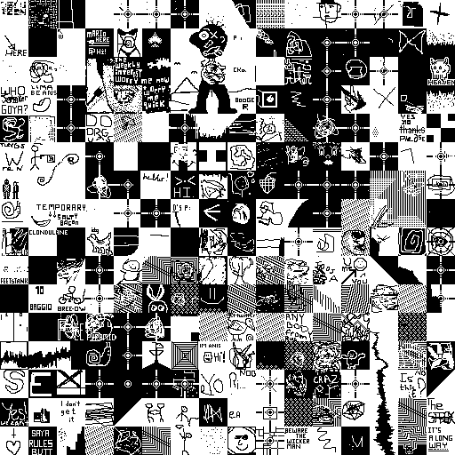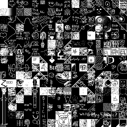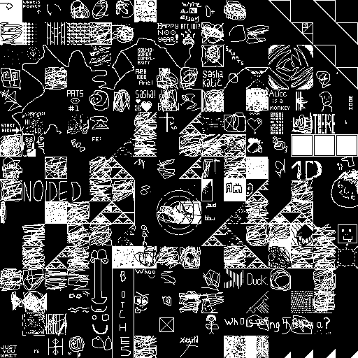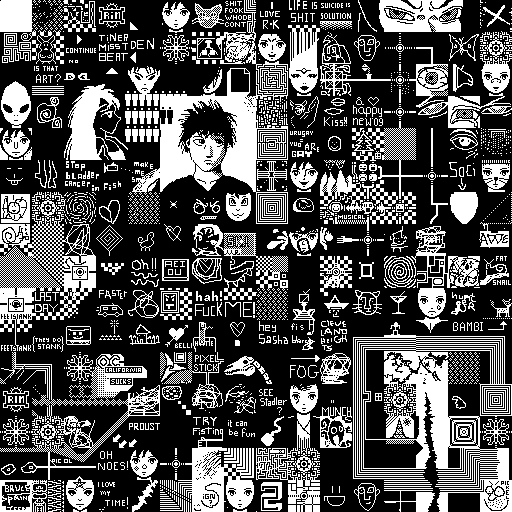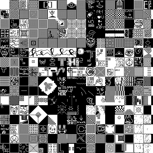 Notes: Most software plays these animated GIF files a bit slowly because they contain thousands of frames. The Linux program xanim plays them well. The whole (time-lapse) retrospective history of the work can be exhibited as a projection. [Help]
