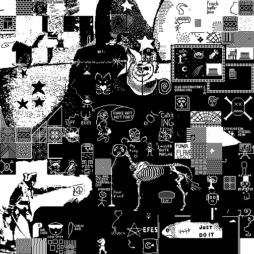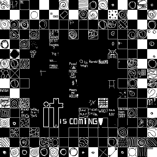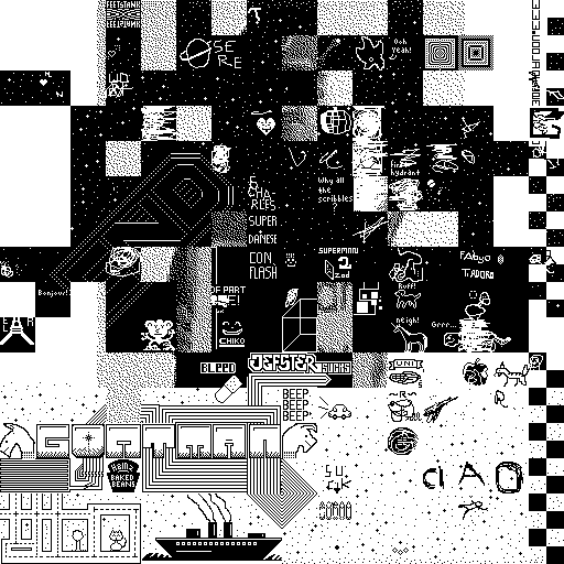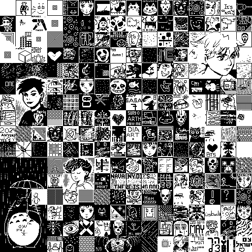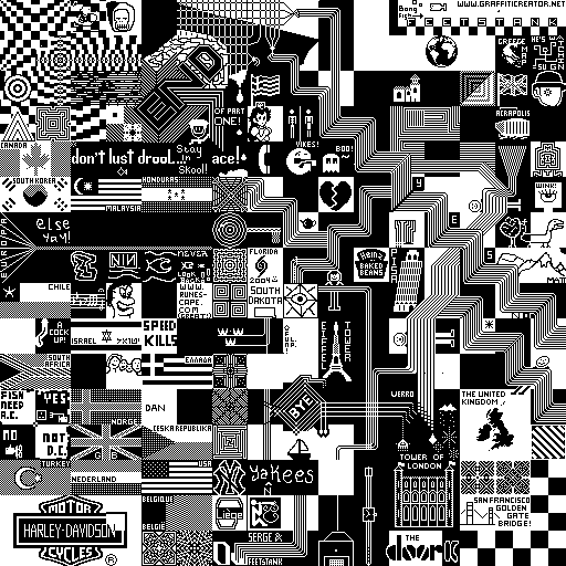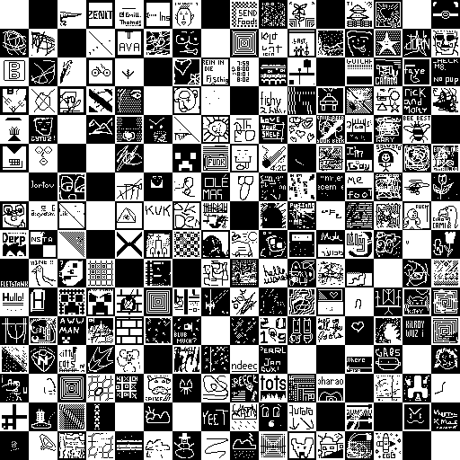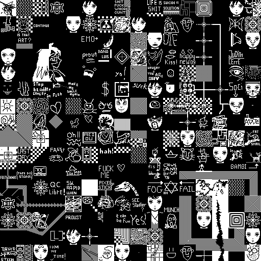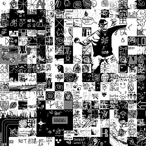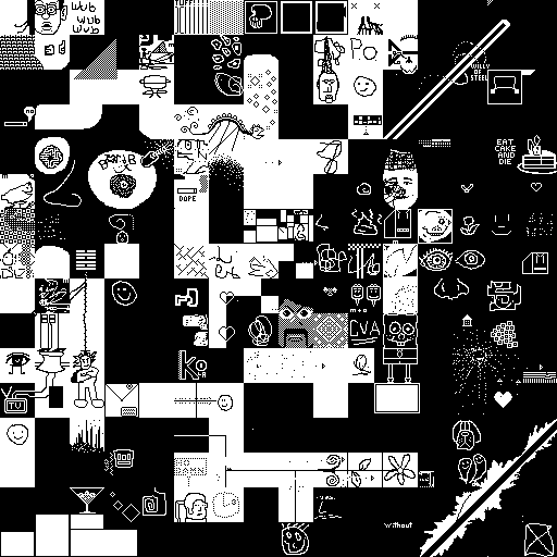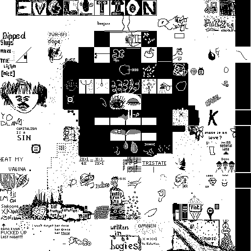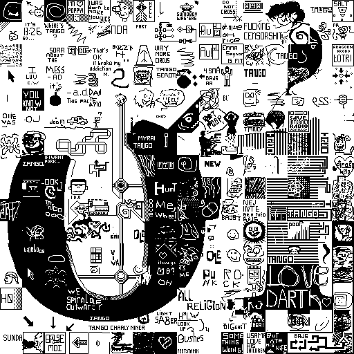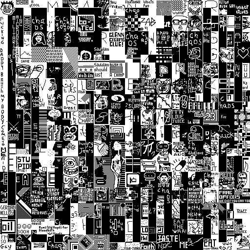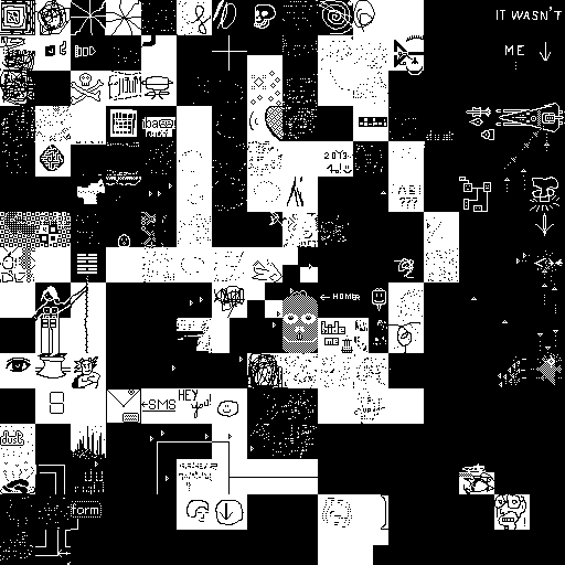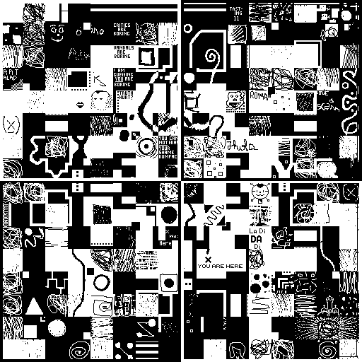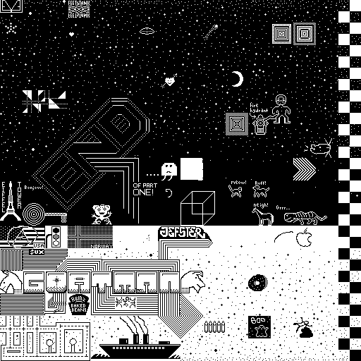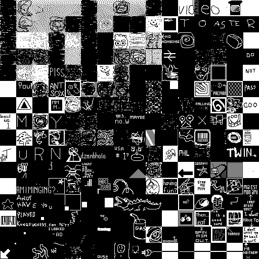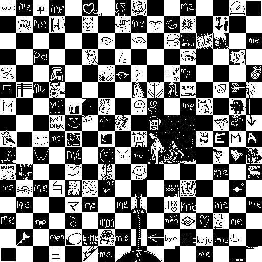 Notes: Most software plays these animated GIF files a bit slowly because they contain thousands of frames. The Linux program xanim plays them well. The whole (time-lapse) retrospective history of the work can be exhibited as a projection. [Help]